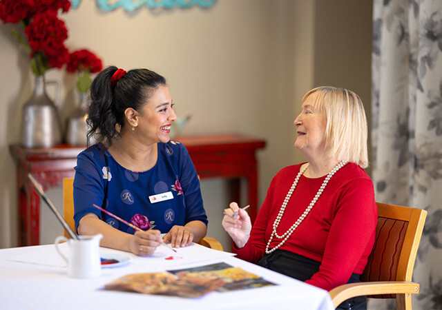 At Ryman Healthcare, we have care centres in our villages where a loved one or family member who are living in their own home can come and stay for anything from a day up to several weeks. When they come to stay with us in care, they have meals provided, all the support they need and they take part in activities offered at the village.