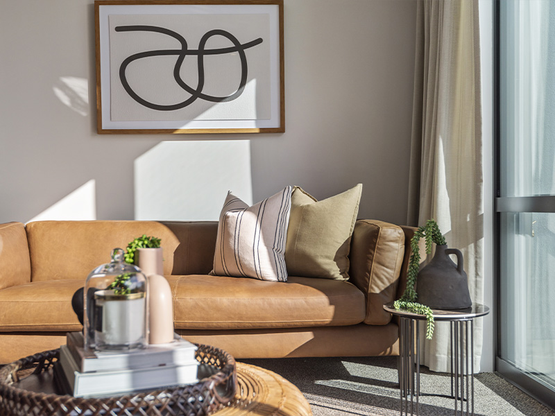 Plenty of natural light filters through windows and doors in your living area and bedroom, while a neutral colour palette lets you furnish and style your apartment just the way you like it.
