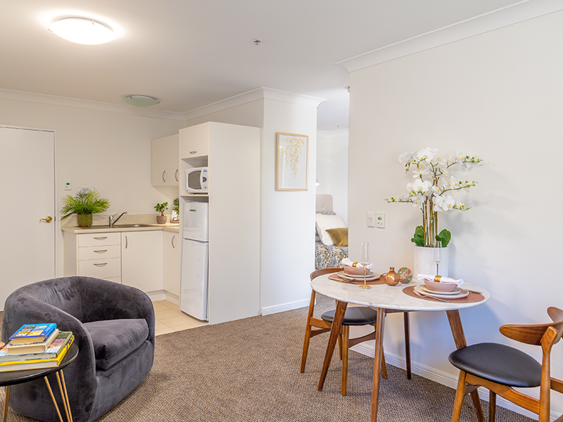 You’ll have a kitchenette with a fridge-freezer and microwave, a bedroom and a private ensuite.* Call bells mean help is always there, as they are monitored 24 hours a day by on-site staff.