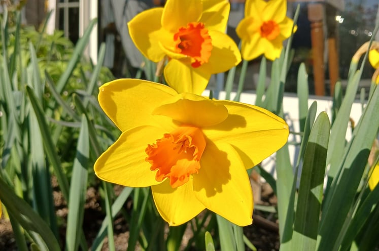 The Archie Boy daffodil shines outside of Arch's village townhouse.