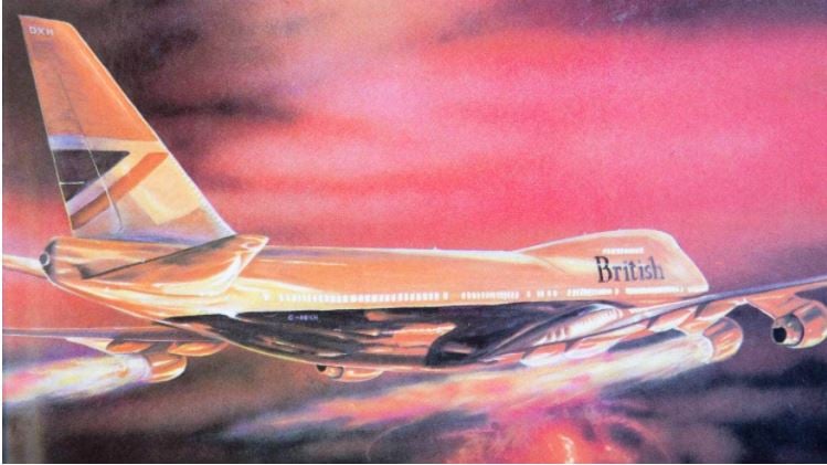 The Boeing 747, named the City of Edinburgh, ran into trouble during the Kuala Lumpur - Perth leg of the journey when it flew over Mount Galunggung volcano, southeast of Jakarta.