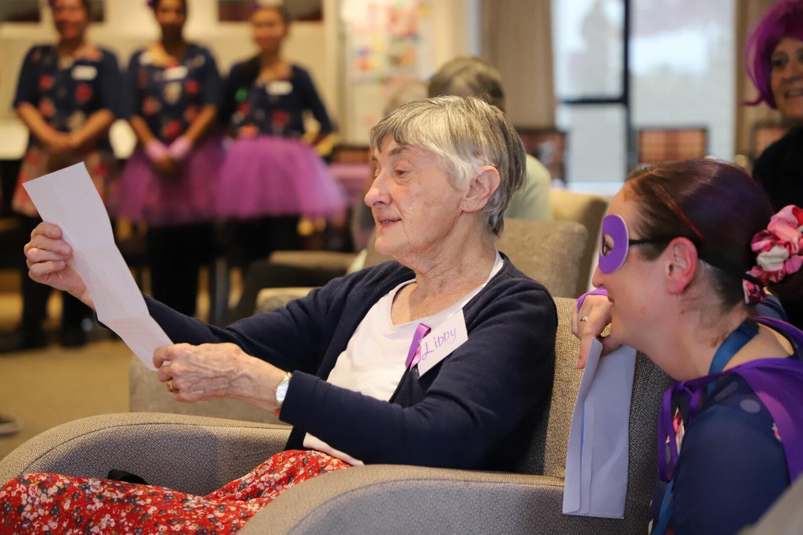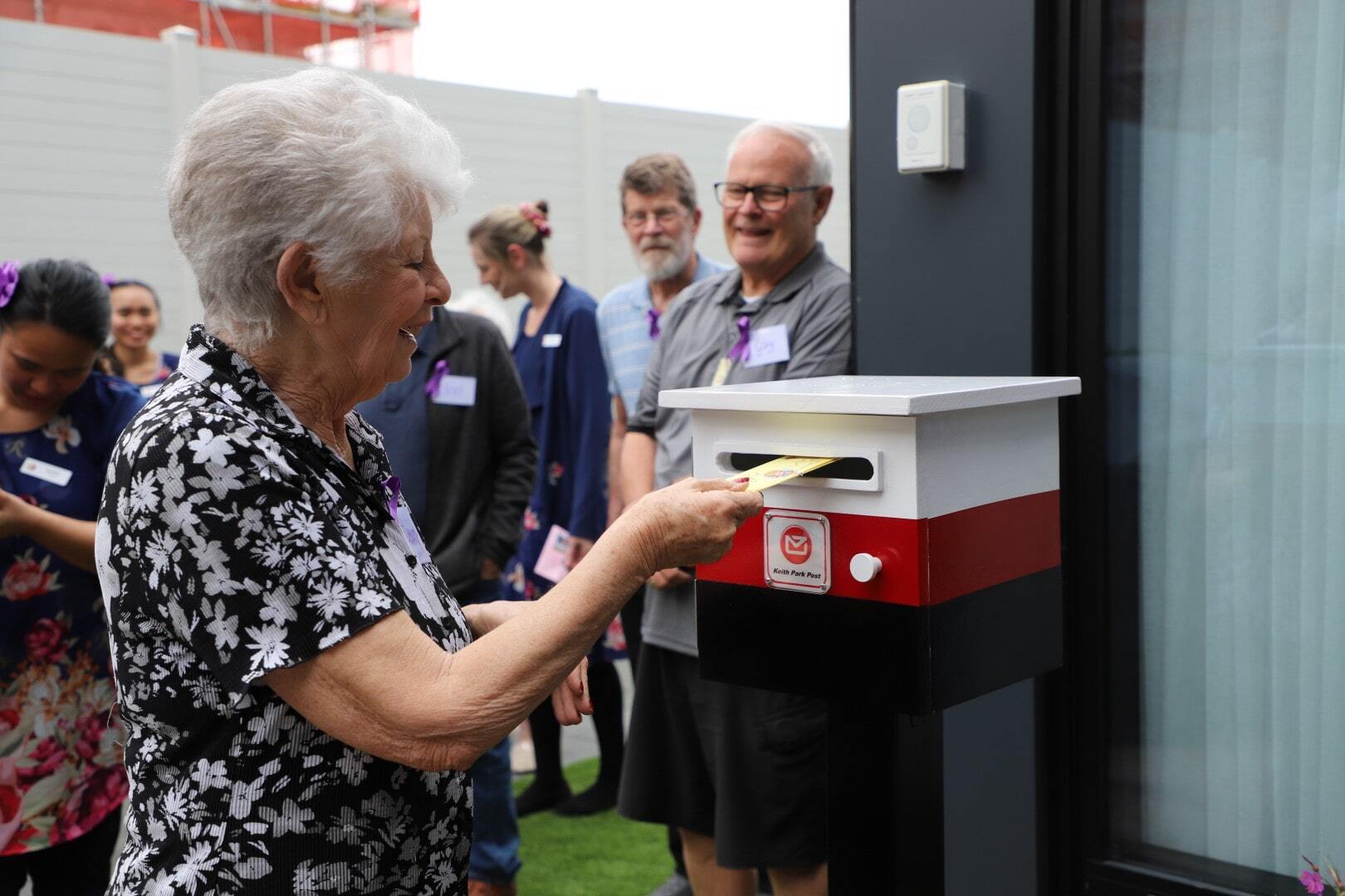 During the special ceremony, and to demonstrate the art of letterwriting, Libby, a resident living with dementia, read out a letter she had received from one of the independent residents, Bruce, who is part of the penpal group writing letters to the residents in the unit.