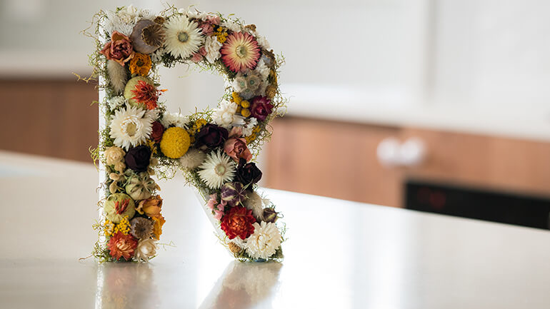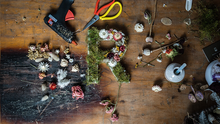 In the video below Sarah walks us through creating a gorgeous dried flower letter. This simple craft will be so much fun to make and would make a great gift.