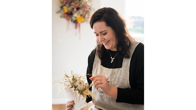 Sarah Hoffman, the owner of Mama Bloom, spends her days weaving dried flowers and greenery into works of art. Knowing that her pieces are treasured in homes and workplaces across Aotearoa is part of her motivation. “That feeling is indescribable. It gives me a real sense of pride and purpose.”