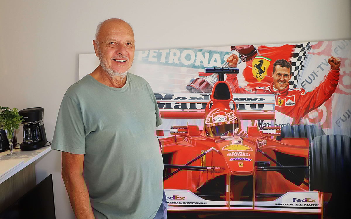 Fredd, 80, was once regarded as Australia’s most prolific automotive artist, and was set on bringing the giant canvas painting of Schumacher to take pride of place in the couple’s living room.