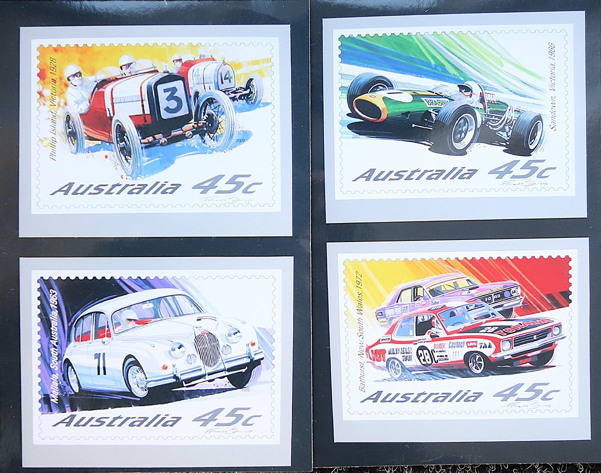 High profile commissions included a set of motor racing stamps for Australia Post, a series of phonecards for Telstra and decorating an ‘art car’ with the theme of Melbourne’s weather for the annual Moomba Parade.