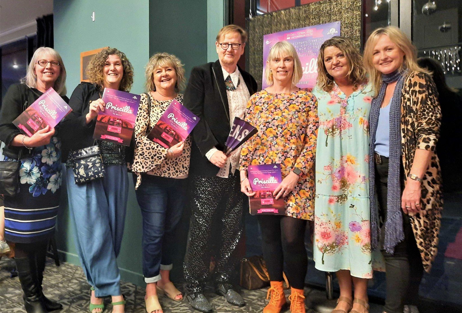 Members of the village team joined a group of residents in prime seats for the show, which tells the story of drag queens Tick, Bernadette and Adam as they take their act to the Australian outback on a pink bus nicknamed Priscilla.