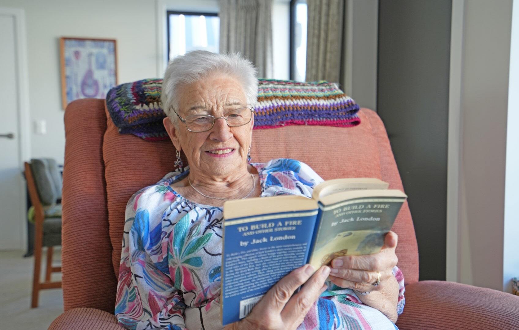 At home in her three bedroom townhouse at Ryman Healthcare’s Kevin Hickman Village, resident Judy Harvey likes nothing better than to read a good book, take up a spot of crochet or tend to her pot plants.