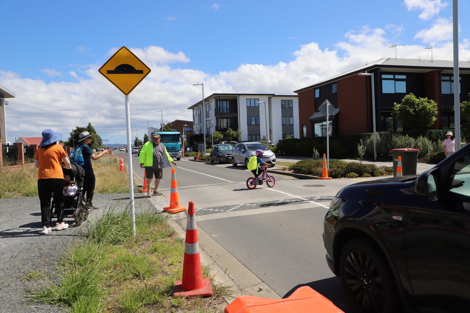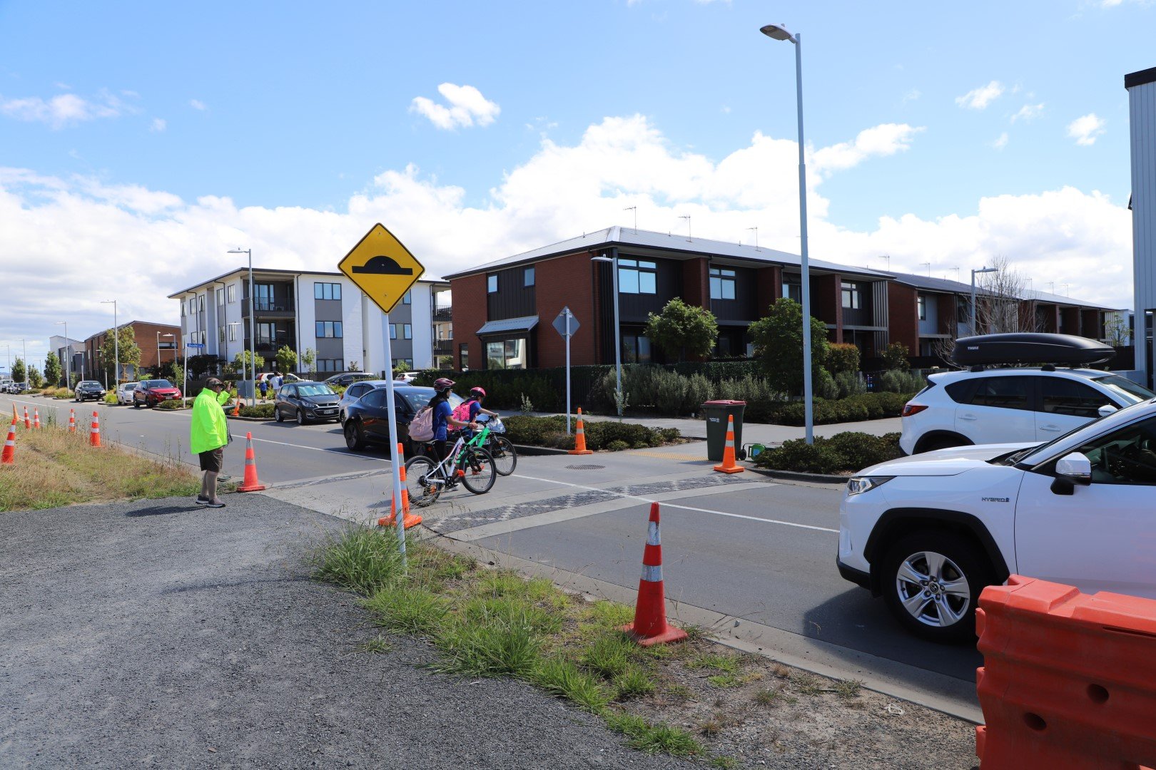 However, Keith Park residents watching the morning school run from their apartments soon noticed the potential accidents waiting to happen.