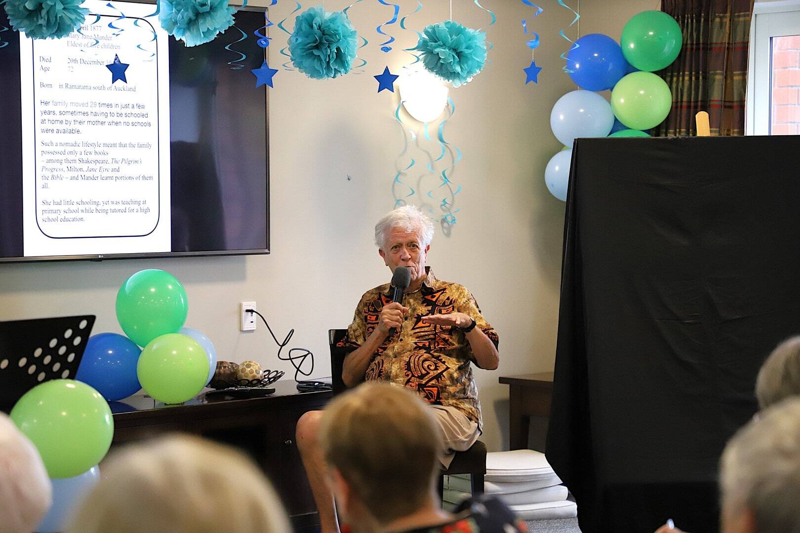 Resident Peter Hartnall passed around some paper and pens for everyone to complete a quiz on Jane Mander, testing their knowledge on her life.