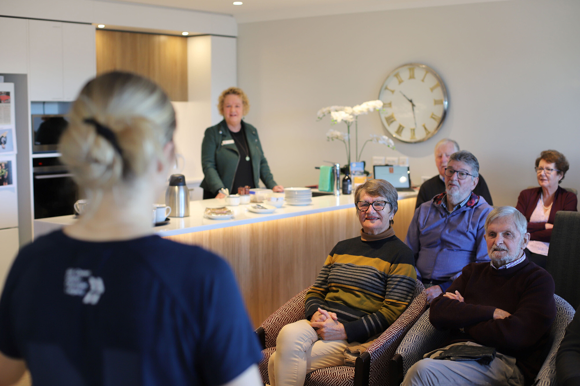 Maddie talked to a full room of residents, showing off photos and videos of her dating back to when she was a 6-year-old, including one from her performing at the Tokyo 2020 Olympic Games. “It’s absolutely my pleasure to be here on a crisp Christchurch morning, especially when I’ve rocked up in my t-shirt,” she joked.