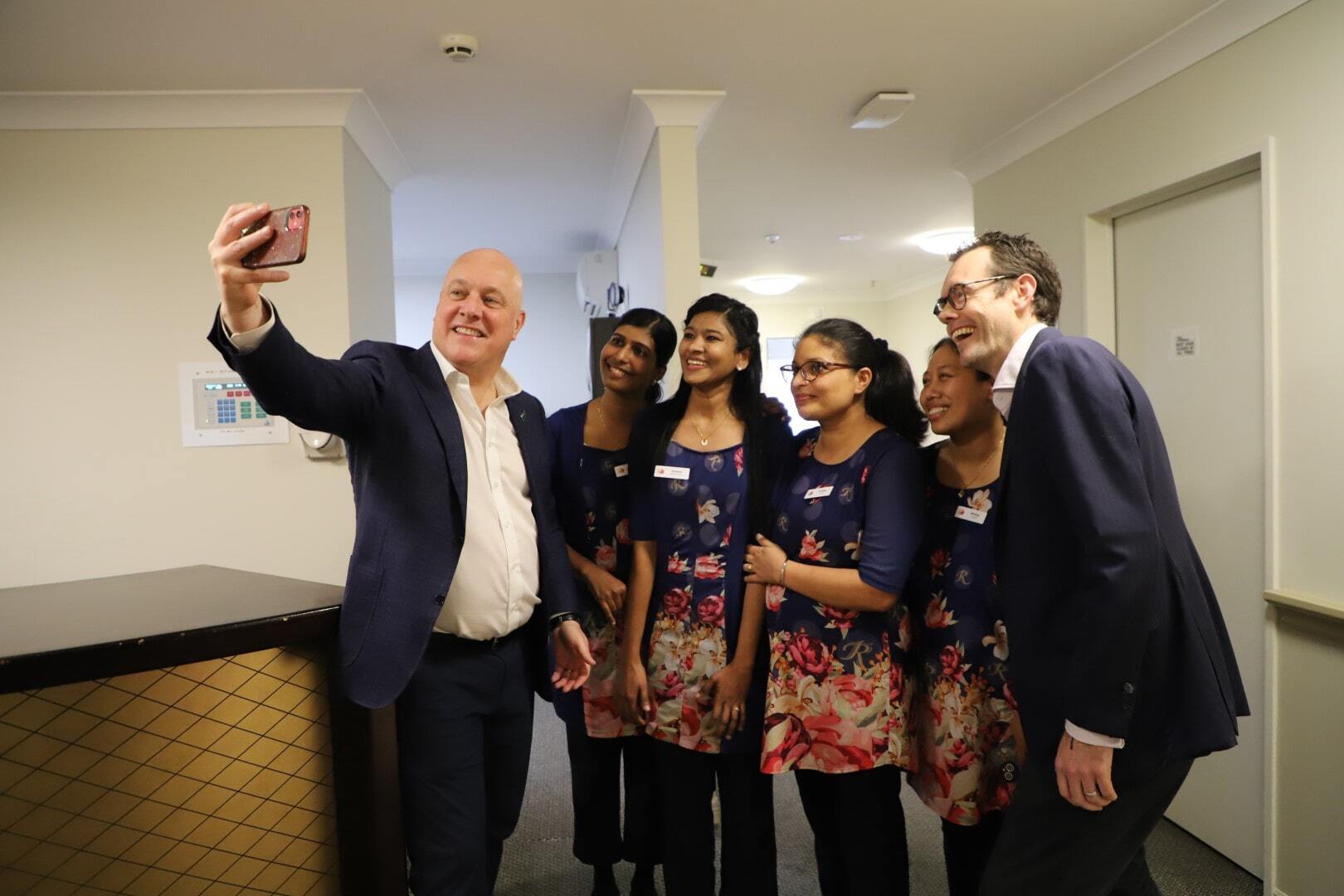 After an enthusiastic greeting by team members who lined up to greet him on arrival, and a few requests for selfies from others, the Prime Minister was given a quick tour of the village, including a look at the historic chapel which was preserved from the former Sacred Heart College that used to be on the site.