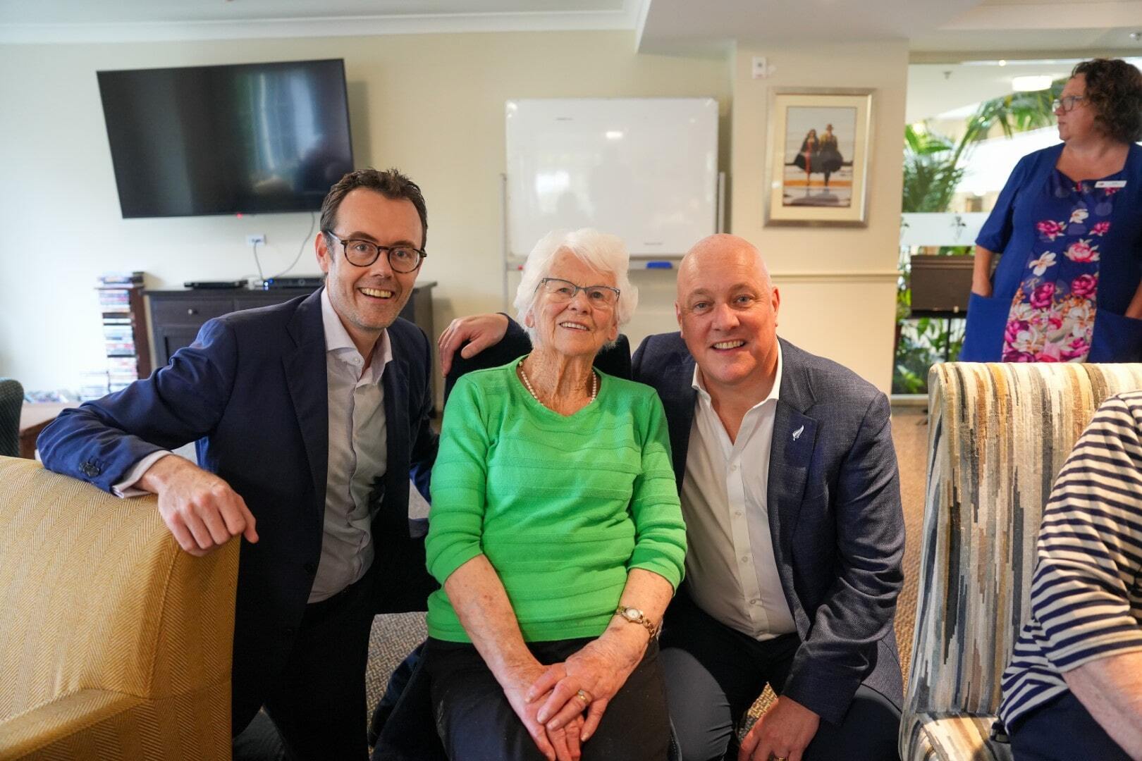 Finally, the Prime Minister made time for a photo with resident Donna Ward-Brinsdon. The 99-year-old has loyally supported the National party since 1948.