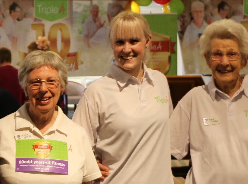 Helen, left, with Ryman Resident Wellness Programmes Specialist Chelsea Richdale and residents.