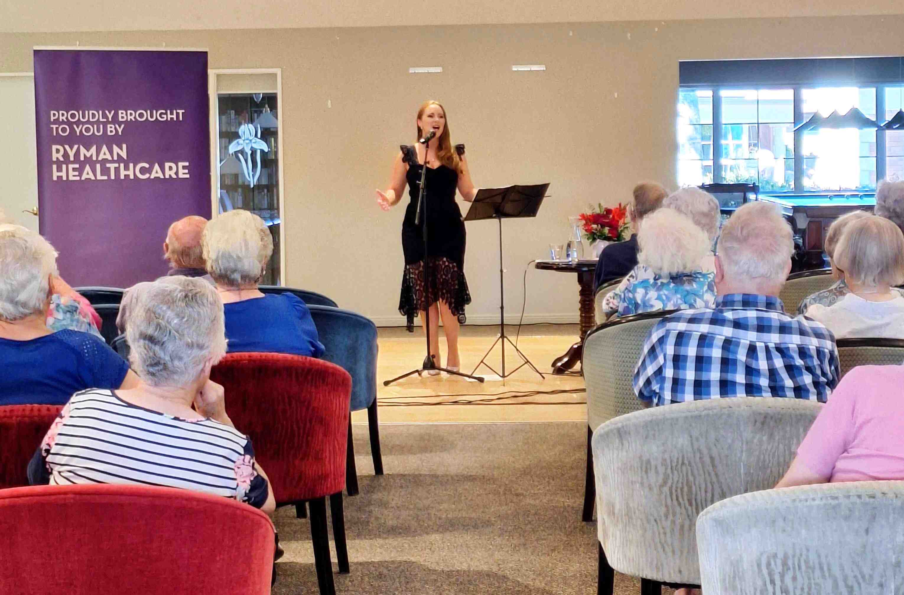 Rebecca’s performance last week was one of three shows lined up to entertain residents and soon-to-be residents of Ryman Healthcare’s Patrick Hogan village in Cambridge, Hilda Ross village down the road in Hamilton and James Wattie village in Havelock North.