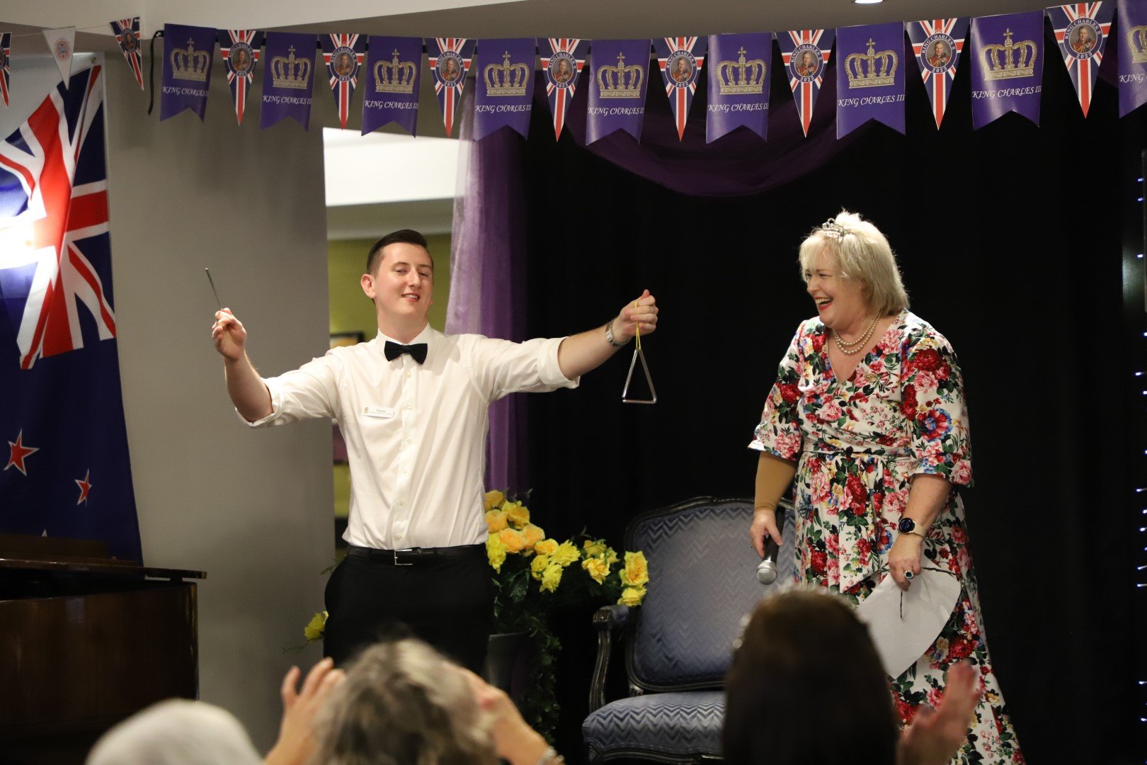 And then there were more resident turns, such as the Bruce McLaren Singers performing a rousing rendition of Land of Hope and Glory, Alison Sutcliffe ballet dancing to Chopin, Celia Martin dressed in crown and cloak reading out a poem about the King, and Rev Ann McLean, a vocational Anglican deacon, with a thoughtful coronation-inspired closing prayer.