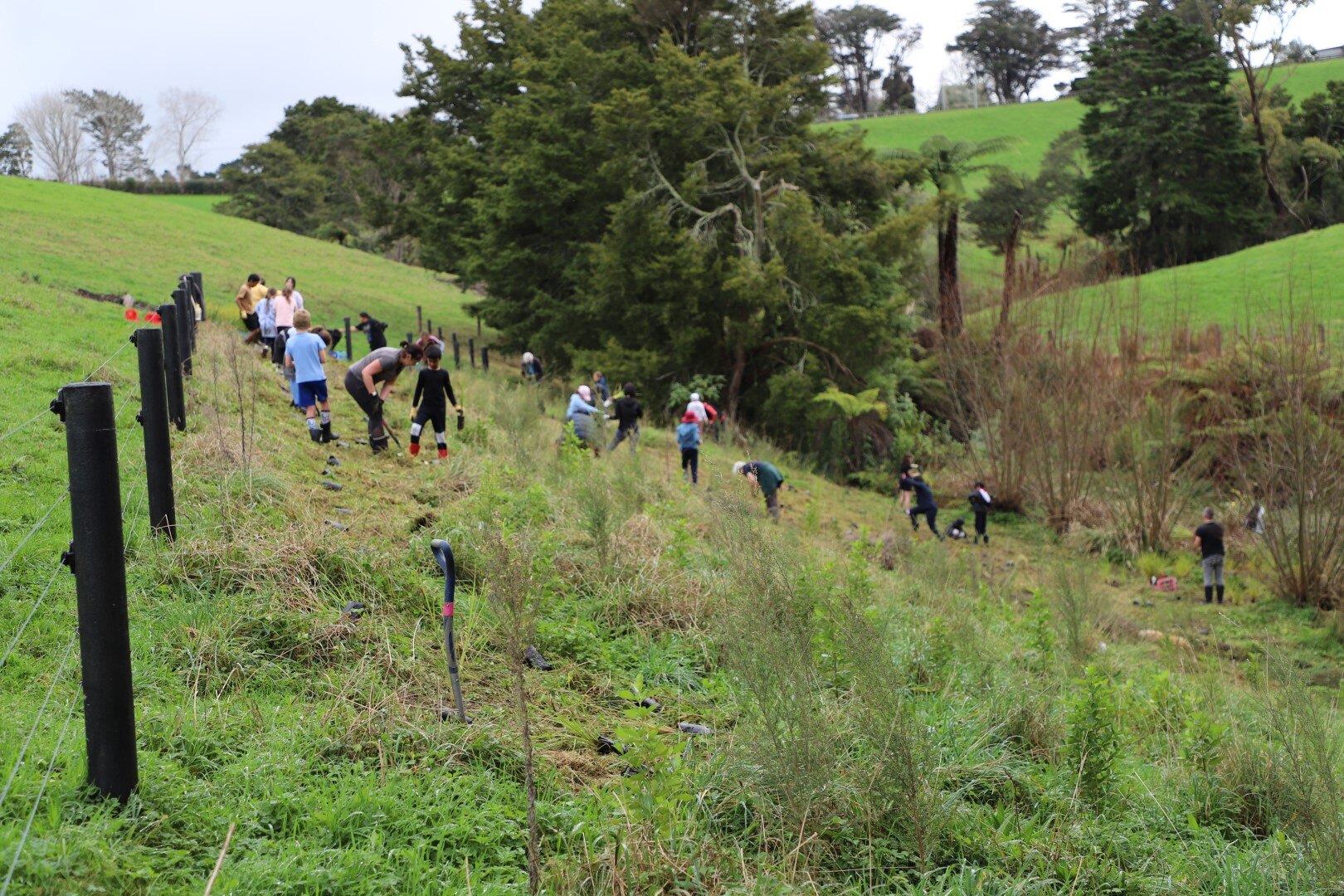 With 500 trees now newly-planted on a slope in a Whitford farm paddock, Ryman Healthcare is well on the way to fulfilling its promise of a more sustainable invoicing process.