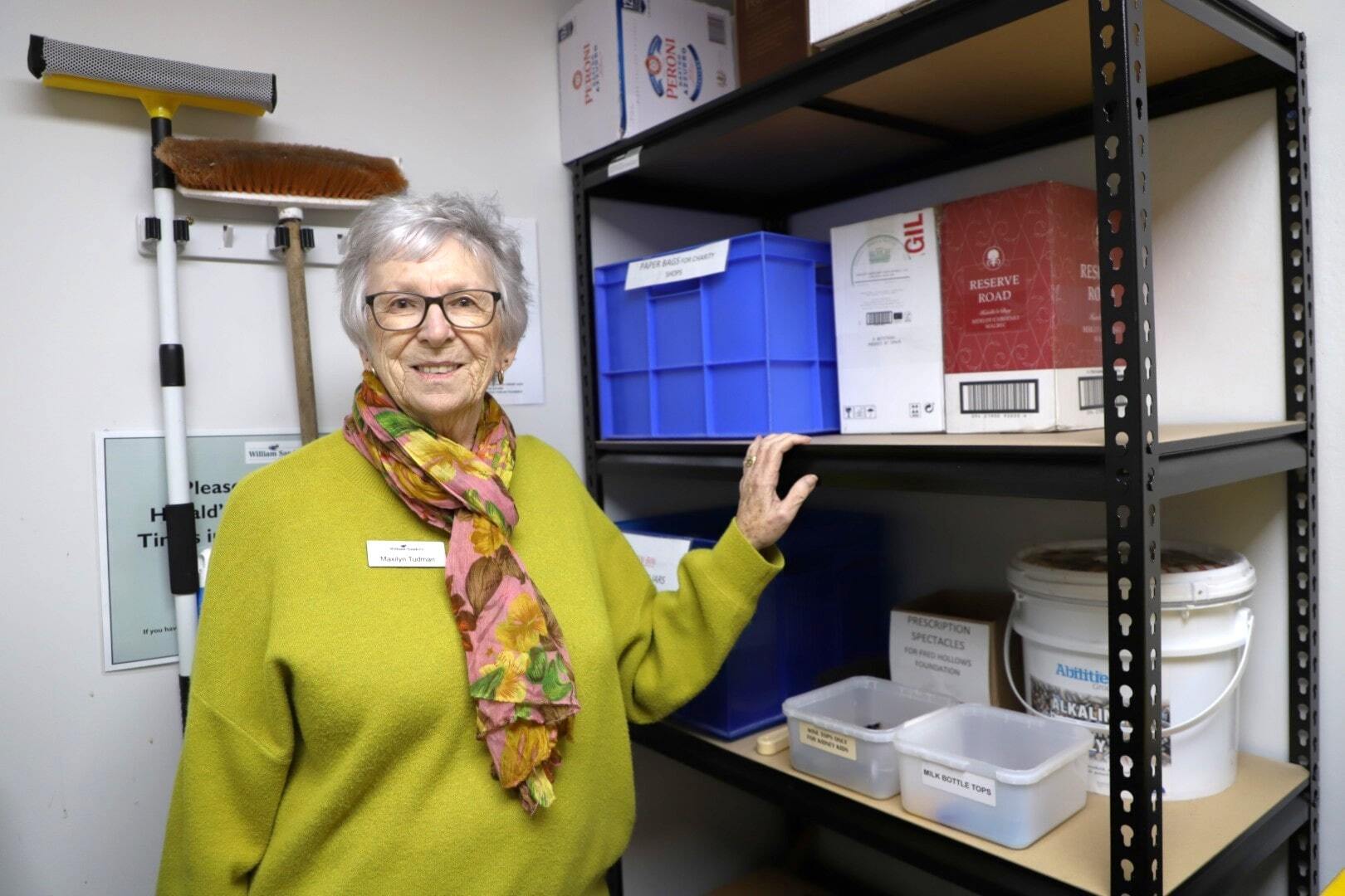 In the rubbish room of her apartment building beside the big wheelie bins, Maxilyn has organised a shelving system with buckets and boxes to collect items ranging from prescription spectacles, paper bags, milk and wine bottle tops, to glass jars, coffee pods, batteries, ice cream containers and newspapers.