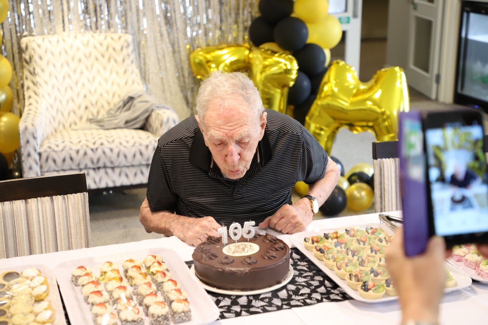 He has outlived his wife Maureen and only daughter Vikki and it’s his ‘show family’, plus his daughter’s best friend Lyn Hastie, who join him each year on his birthday, including yesterday for a fantastic afternoon tea to celebrate his 105th.