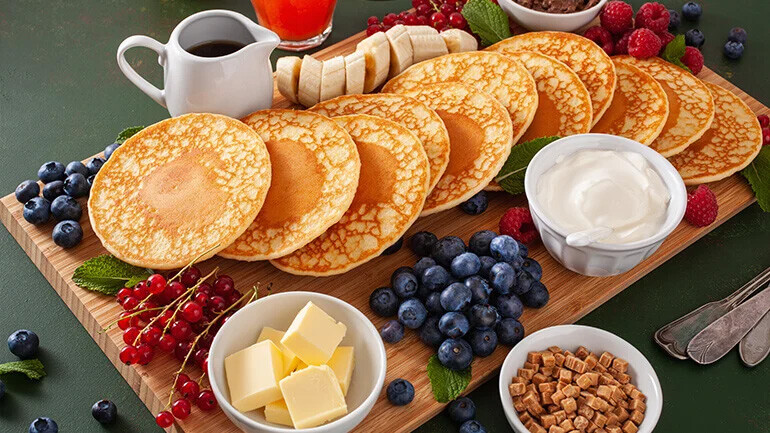 This breakfast platter can make any morning special – whether you’re celebrating a birthday, someone special, or that it’s Saturday. We’ve included all the usual breakfast foods below from sweet to savoury.