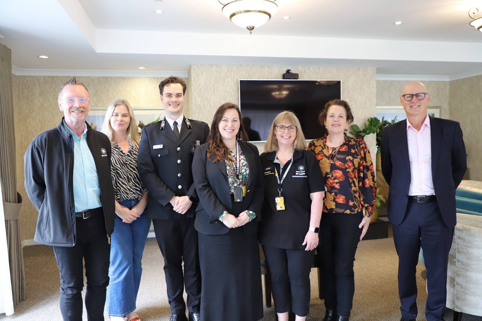 The team from Hato Hone St John with Ryman Healthcare’s Executive Chair Dean Hamilto (far right). From left: GM Community Impact and Programmes Steve Montgomery, Communications Business Partner Amy Nola, Community Partnership Fundraiser Stephen Robinson, GM Customer Experience and Marketing Natalie Davis, National Manager of Community Education Jacci Tatnell and National Manager of Partnerships and Activations Maggie Butler.