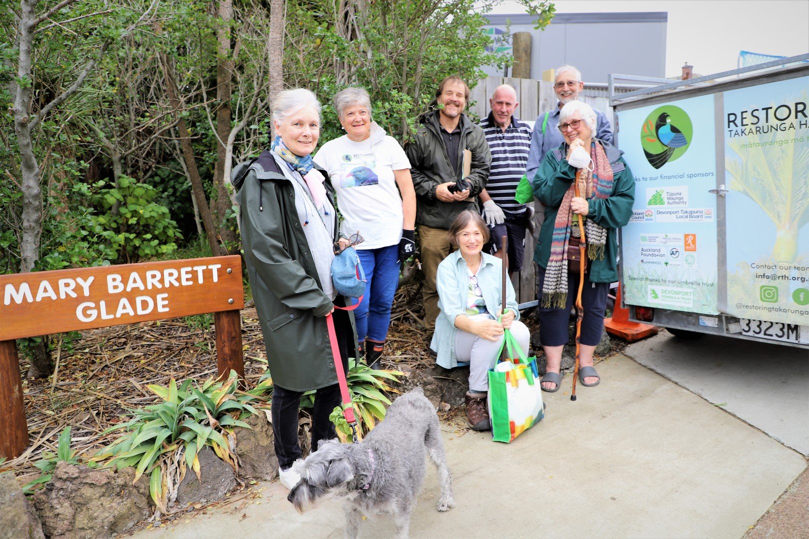 The team of volunteers from Restoring Takarunga Hauraki includes several residents from William Sanders Retirement Village, with Ryman Healthcare branding now taking pride of place on the RTH trailer.