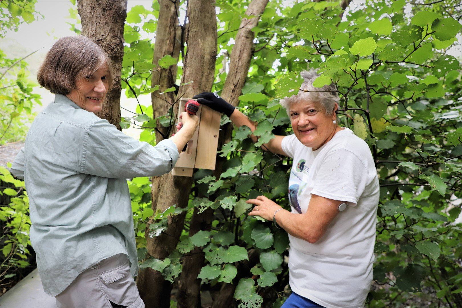 In a small slice of native forest neighbouring Ryman Healthcare’s William Sanders Retirement Village, half a dozen tiny wooden structures have appeared on tree trunks.