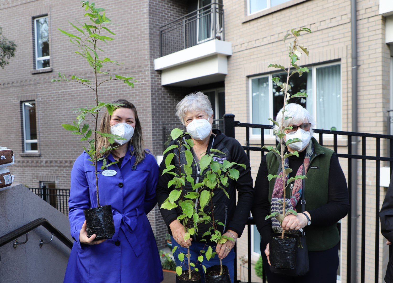 Sales Advisor Dell Smythe joins RTH volunteer Anne McMillan and resident Val Griffiths at the native tree planting in the village grounds.