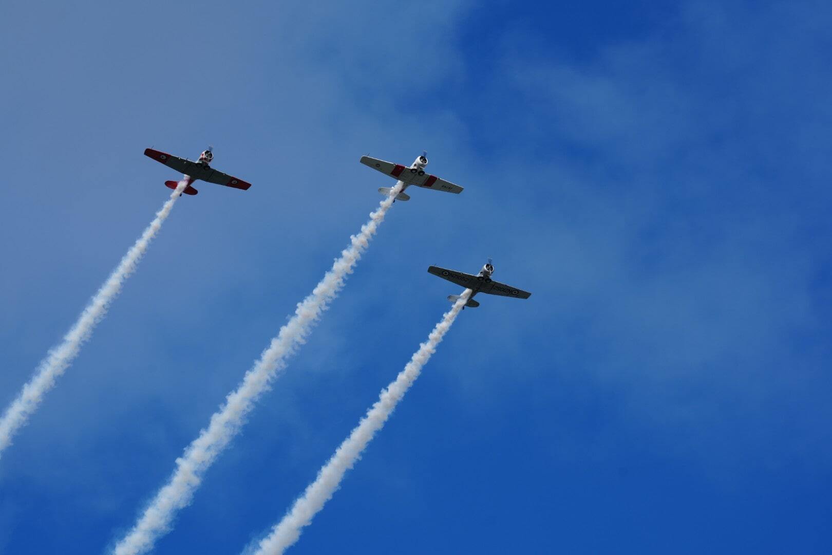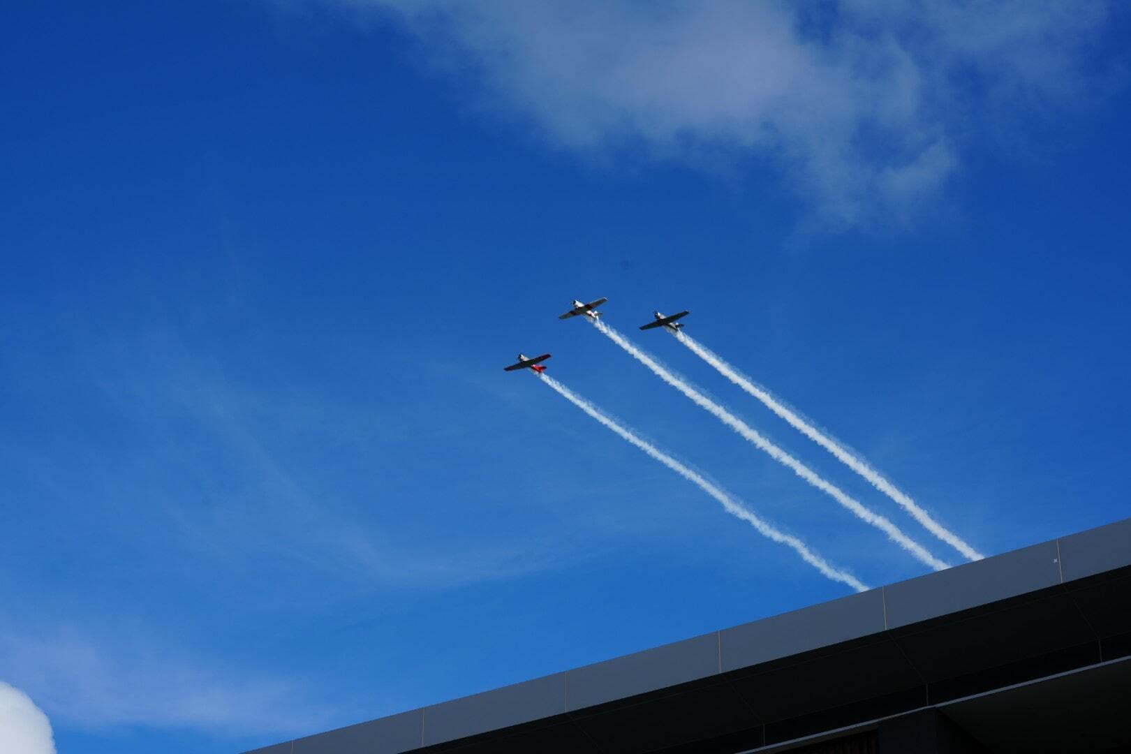 Nearly 250 residents and guests gathered outside the village centre to watch the flyover, consisting of three vintage Harvards, which kicked off celebrations to mark the official opening of the Hobsonville village.