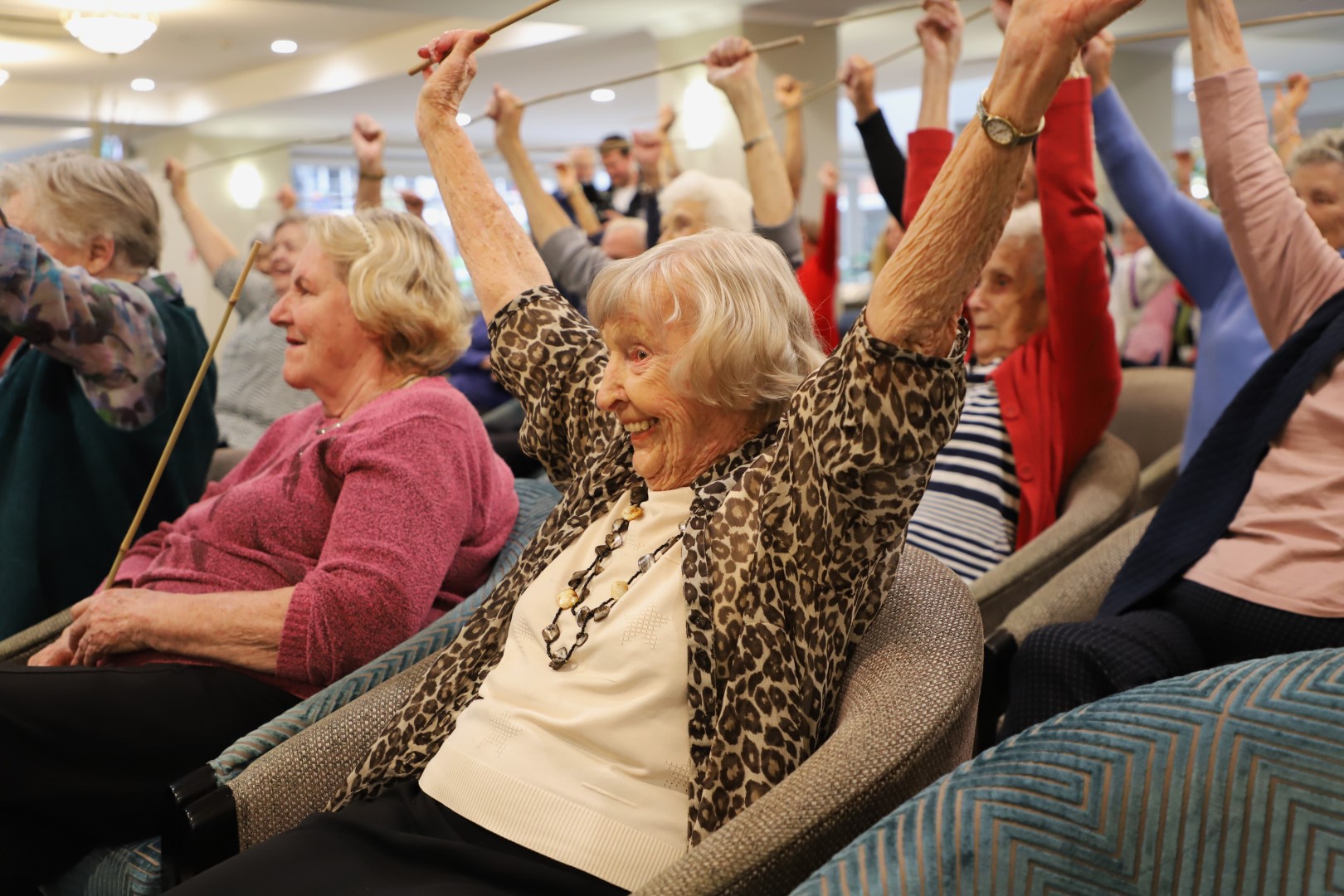 David and his coach Tina Ball also encouraged residents to practice the required moves – but using a slightly lighter weight bamboo stick!