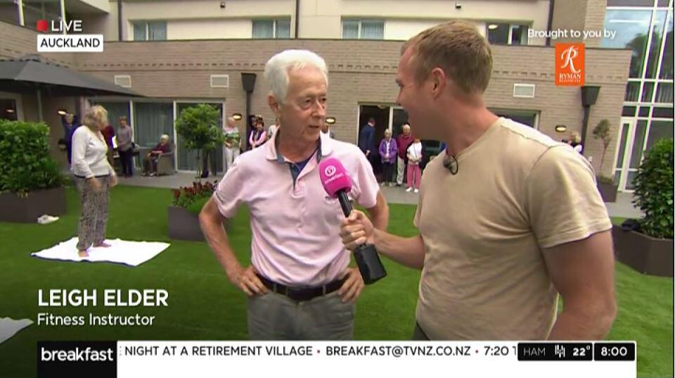 Leigh led a stretching class for fellow residents on TVNZ's Breakfast Show last year.