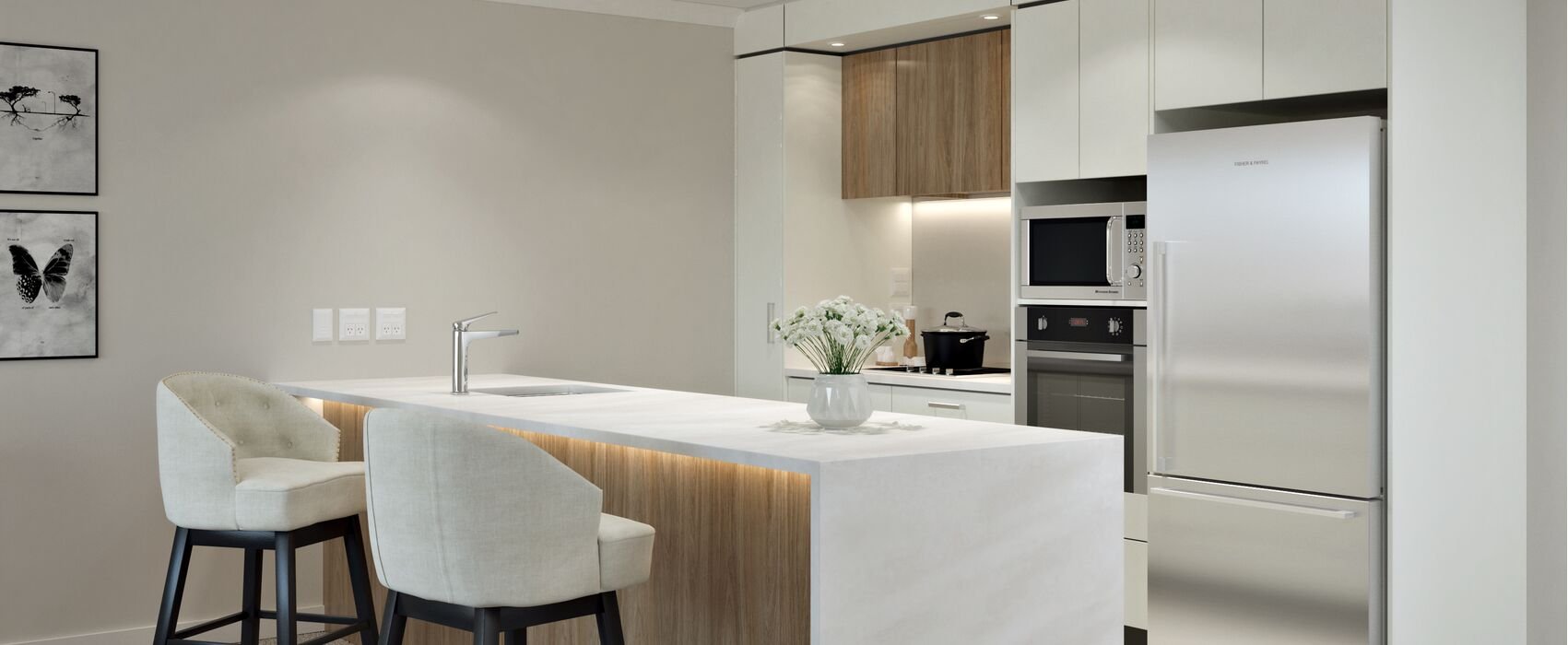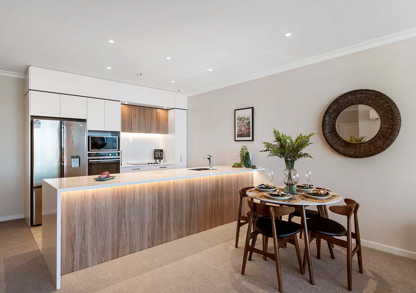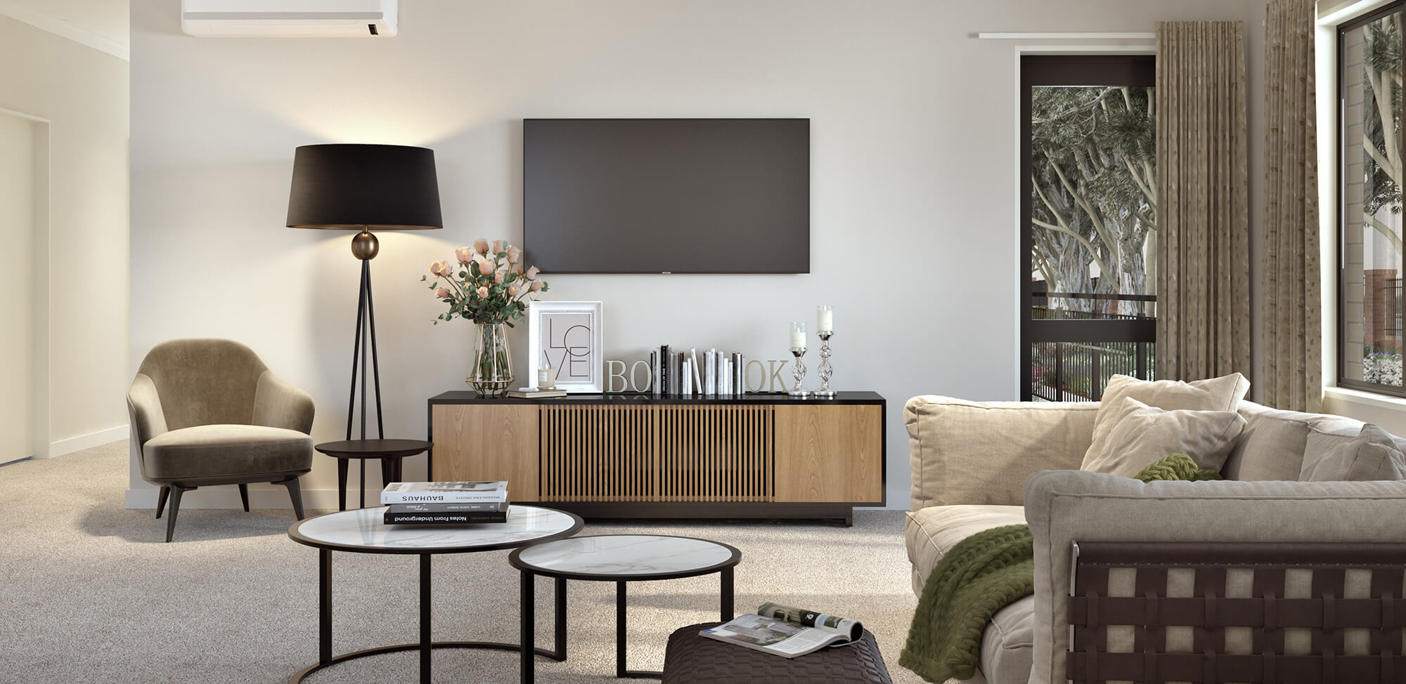 Clean lines and a clever design layout make for an easy everyday independent lifestyle. Natural light filters through full-height windows leading to your balcony or terrace, while a neutral colour palette lets you add your own personality to the interior. Everything about the space is warm and inviting and that feeling blends seamlessly from room to room.
