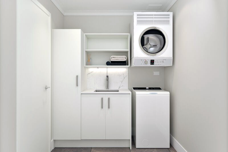 A laundry provides the ultimate functionality, with a purpose-built tub and shelving to maximise storage and space.