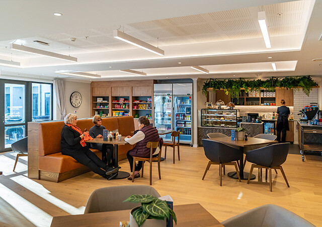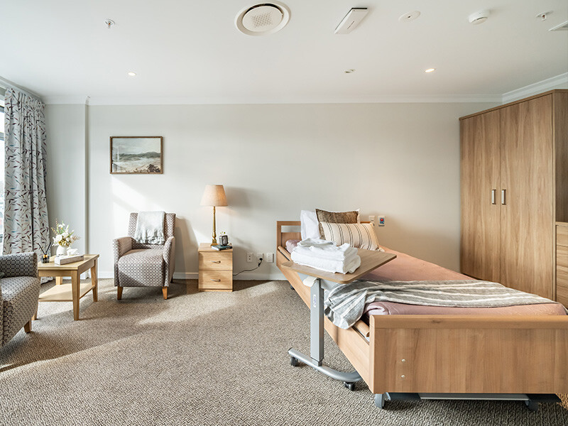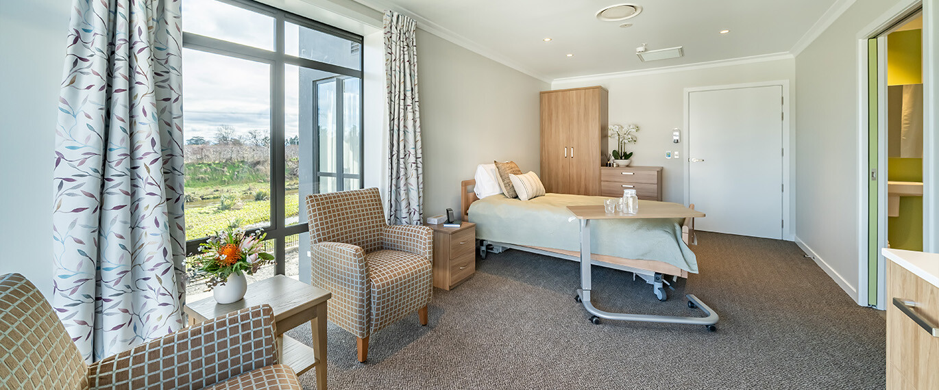 Care suites are in premium corner locations and offer extra privacy, large windows, generous floor plans, a tea and coffee station including a small fridge, a television, and private ensuite. With more space to call your own, there is plenty of scope for you to decorate your care suite and spend time with visitors. If you are receiving rest home care, you can continue to live in your care suite even if your needs increase to hospital level care.