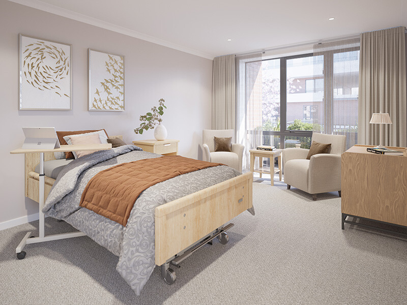 Care rooms are built to superior specifications and include a private ensuite and monitored call bells. There are a selection of room layouts to choose from, and you are encouraged to personalise your room to help you feel at home.