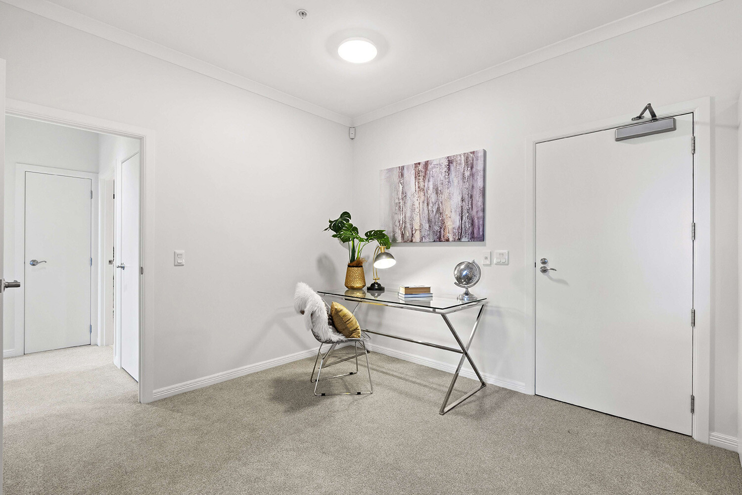 Enjoy an open plan living and dining area which boasts afternoon sun and views over the village gardens. From the living room, step out onto your balcony and enjoy the fresh air. This spacious home is great for hosting dinner parties or inviting the grandkids over for a sleepover in the spare bedroom.