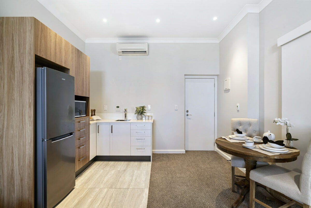 Enjoy watching the village comings and goings from your open plan living and dining area, which is complemented by a modern kitchenette, perfect for whipping up light meals. This larger than average serviced apartment boasts plenty of storage, including an additional cupboard and two built in wardrobes. For added convenience, your separate bedroom features its own ensuite. Plus, you can even receive hospital level care in this serviced apartment, which means as your needs change, your space won’t.