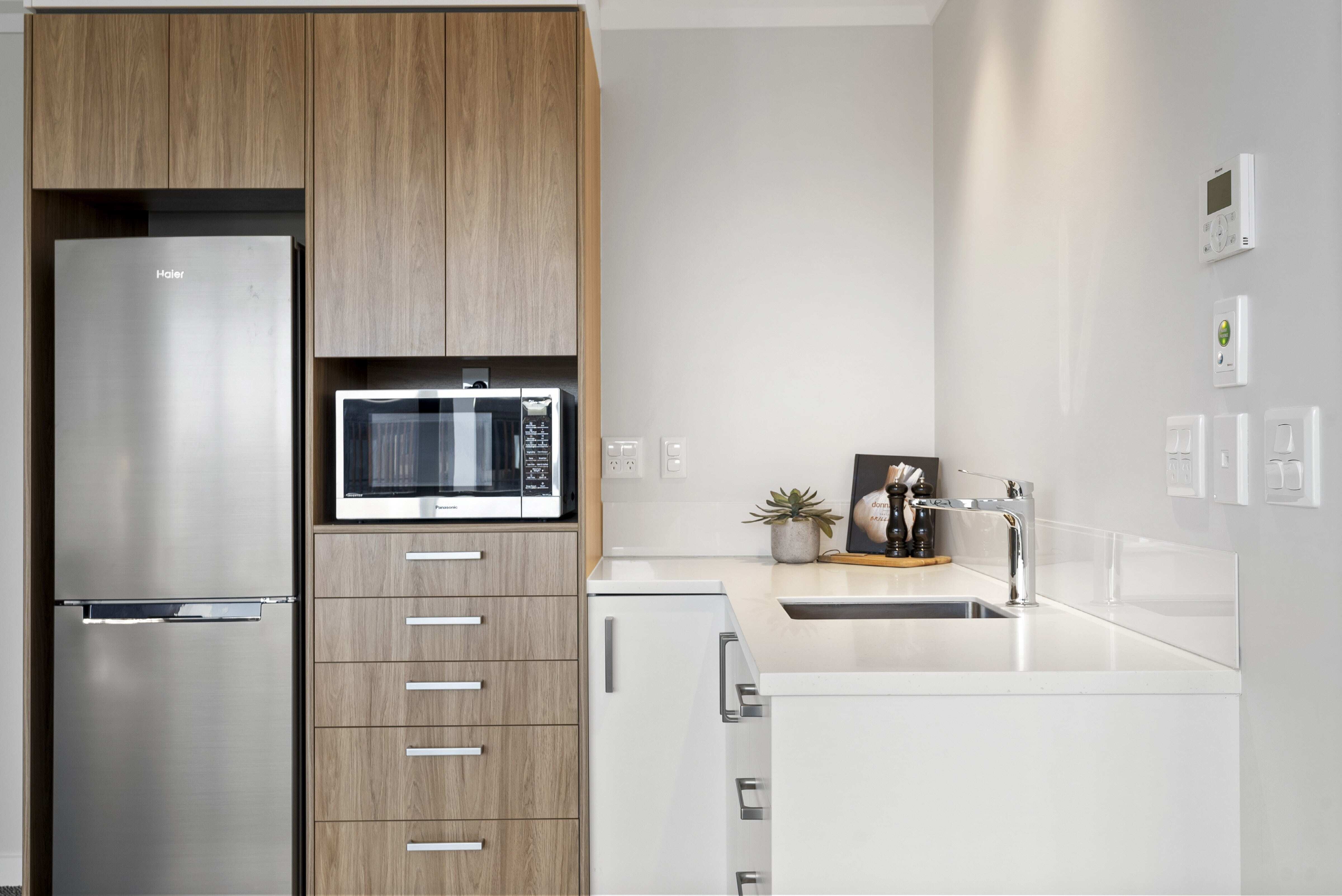 This over-sized corner apartment features additional windows for added sunlight and warmth. Pull back the sliding door from your bedroom and step out onto your private balcony to enjoy the views over the village gardens. This home is fitted with a modern kitchenette and an ensuite, built with our latest modern design.