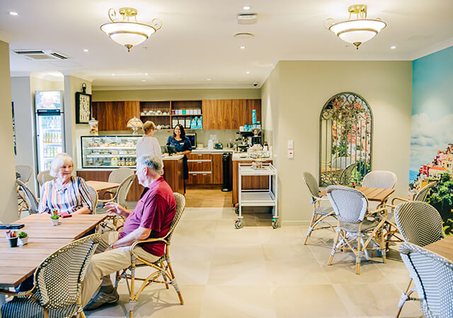 Community is central to the lifestyle so we offer amenities that encourage that sense of togetherness, such as a café, dining room, bar, hair and beauty salon, and shop.
