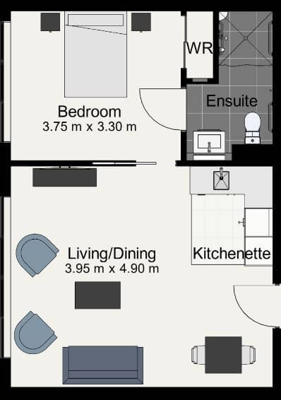Relax in your open plan living room and enjoy the warmth of the afternoon sun as you take in the views of the village fountain. This is a great space for inviting friends and family round and is close to the village dining room and lounge. Featuring an ensuite for your comfort and convenience, and a modern kitchenette for preparing light meals and snacks.