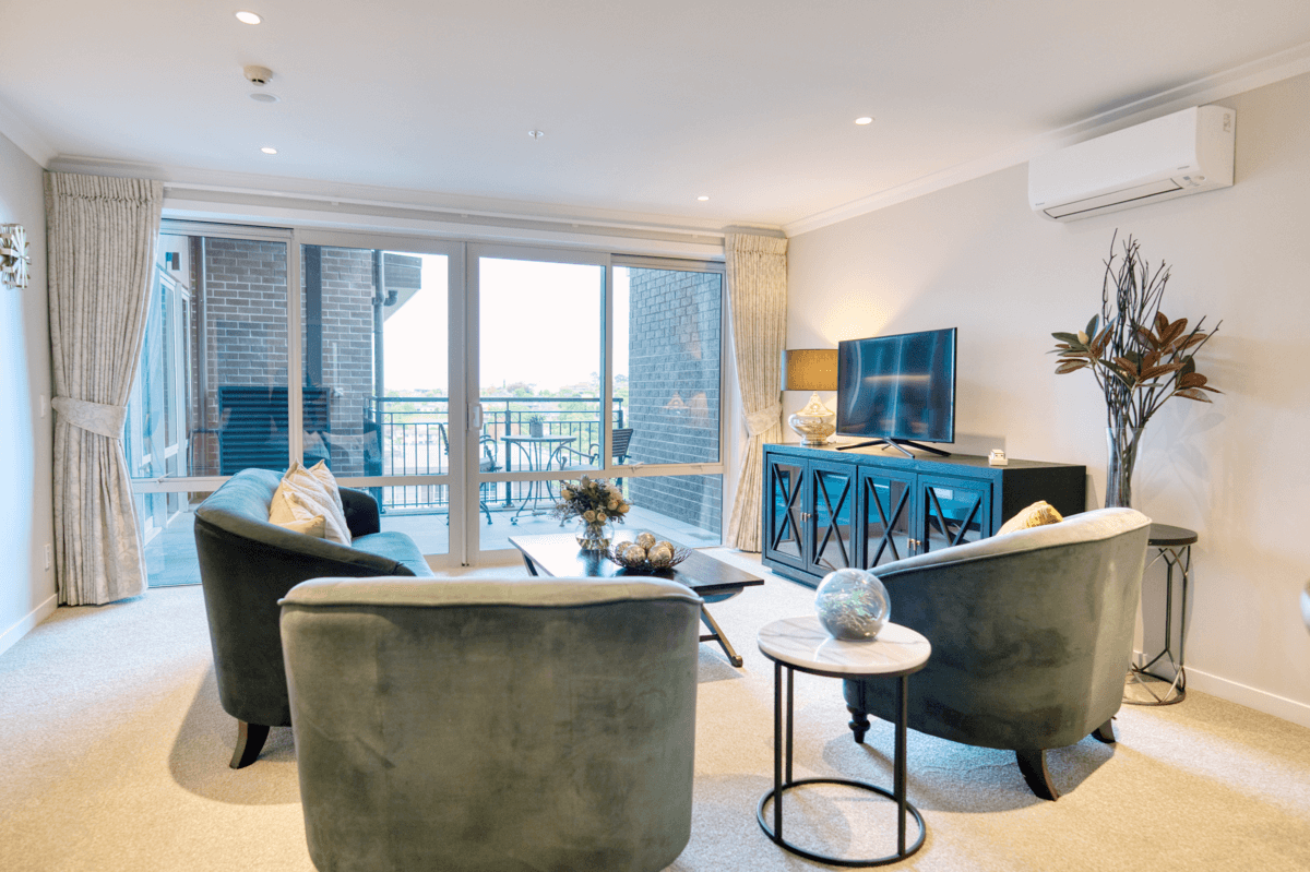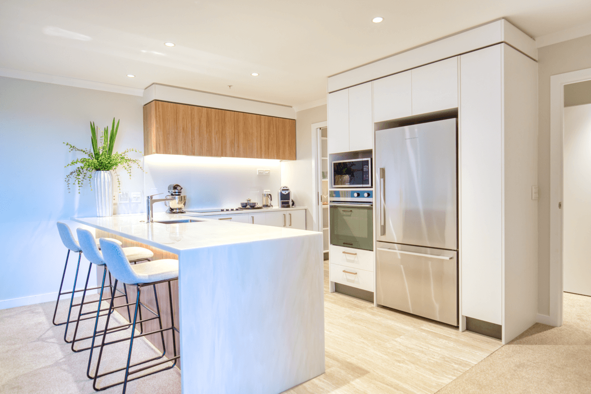 This private apartment is roomy and spacious, ideal for family gatherings and hosting friends for dinner parties. Your contemporary kitchen has plenty of space, featuring a Corian benchtop and butlers pantry.