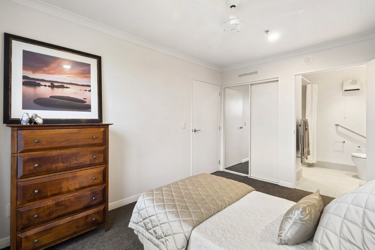 Enjoy the afternoon sunshine in your spacious living area, with views of the bowling green and lush bushland. The modern kitchenette is well equipped with a fridge, freezer, and microwave – ideal for preparing light meals. Your separate bedroom offers a private retreat, featuring a double wardrobe, ensuite, and sliding door access to the balcony.