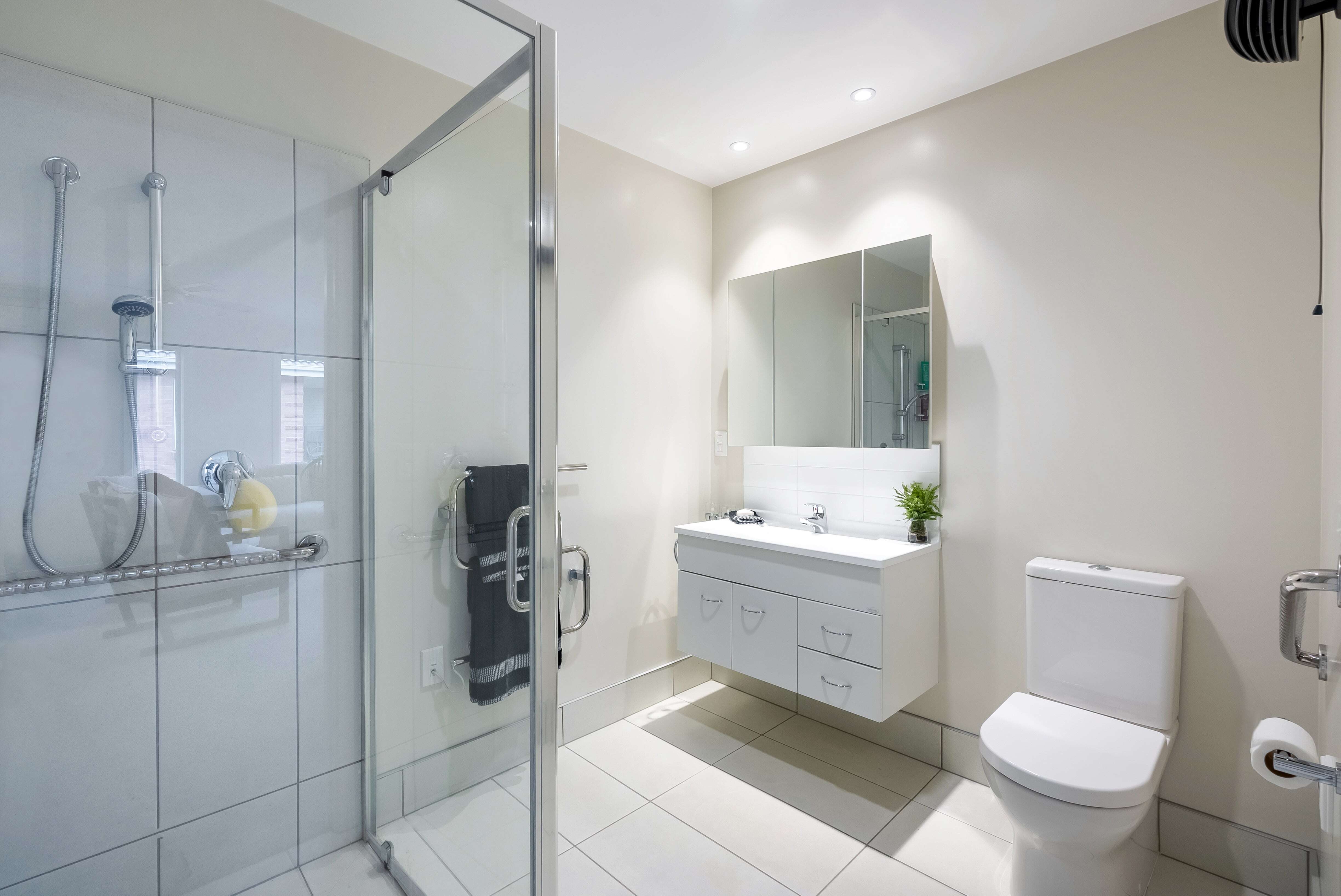 Down the hall you will find two bedrooms, a separate laundry, and a bathroom plus a second toilet. The two-bedroom layout provides flexibility, whether for hosting visitors, setting up a hobby space, or creating a home office.