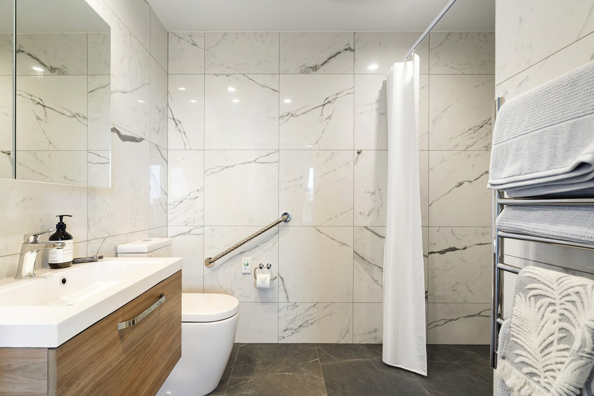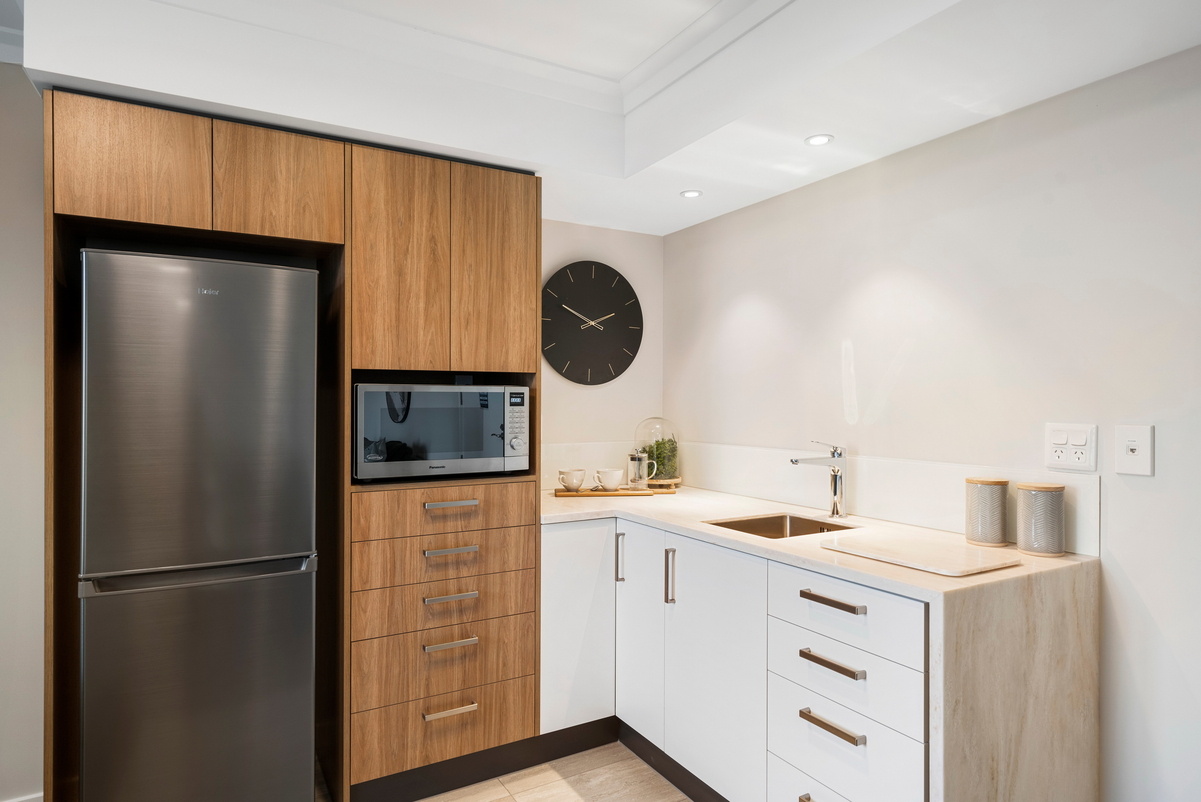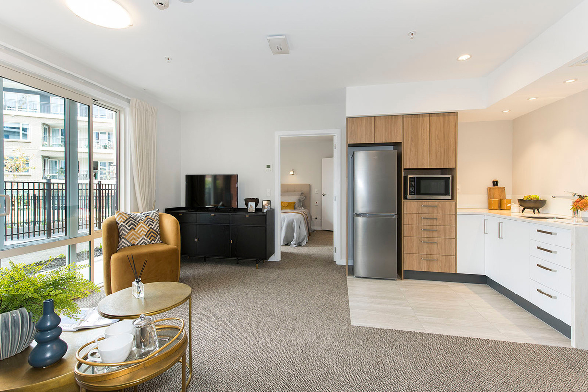 This cosy serviced apartment boasts views over the village gardens from your balcony. Inside is a large lounge and dining area where you can relax in the morning sunshine. A separate bedroom with a luxurious ensuite and sliding door access to the balcony is the cherry on top.