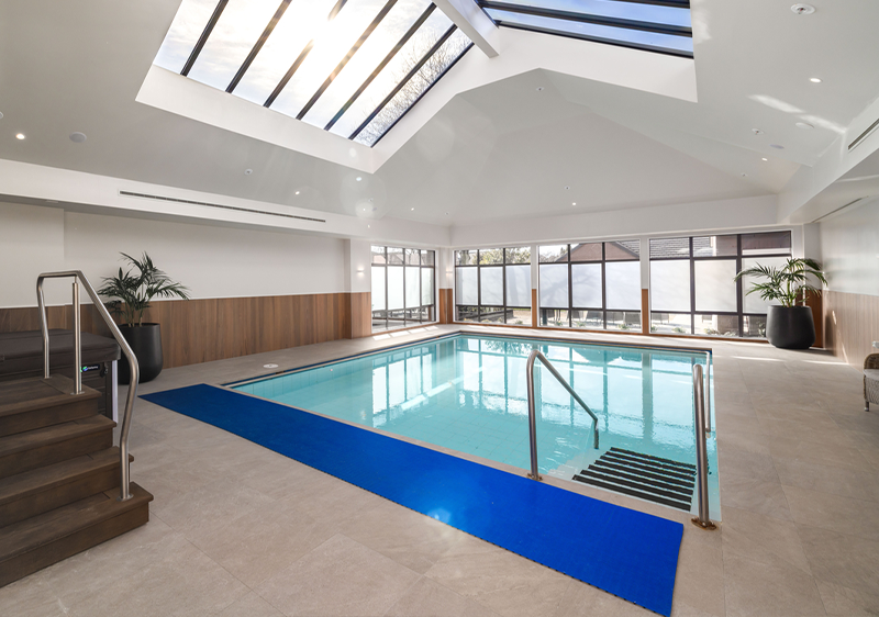 Village amenities include an all-weather bowling green, indoor heated swimming pool, spa, internal atrium, library, gym, café, hair and beauty salon, bar, and shop.