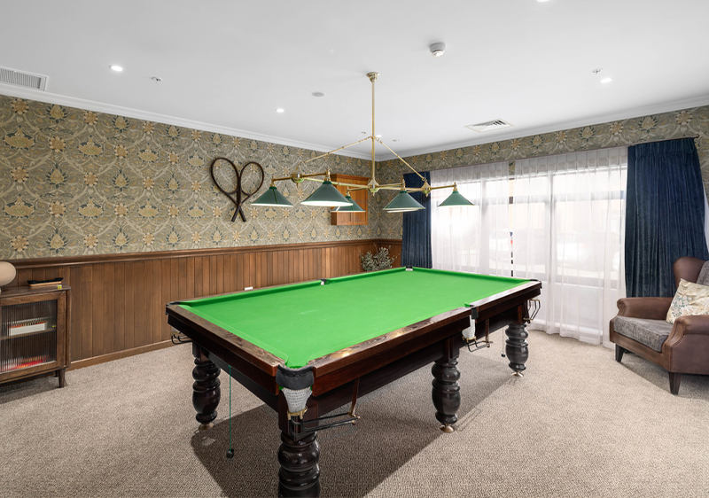 Retirement is a great time to sharpen your skills on the passions and pastimes that you love. Spend time enjoying the pool table, indoor bowls and library.