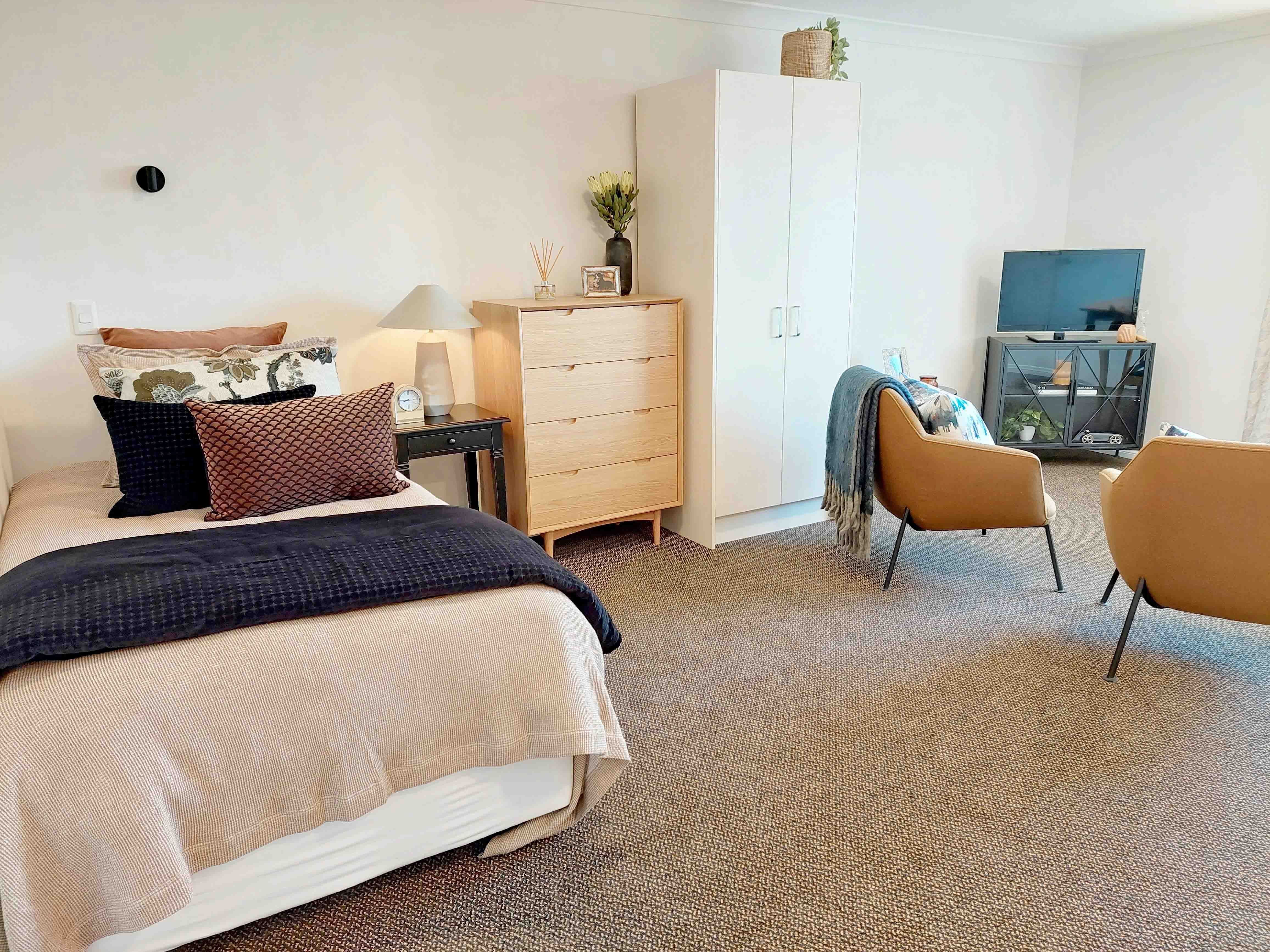 Live a little easier in a serviced apartment, enjoy the open planned layout equipped with your own kitchenette where you can whip up light meals and enjoy a cup of tea in your sunny north facing living area.
