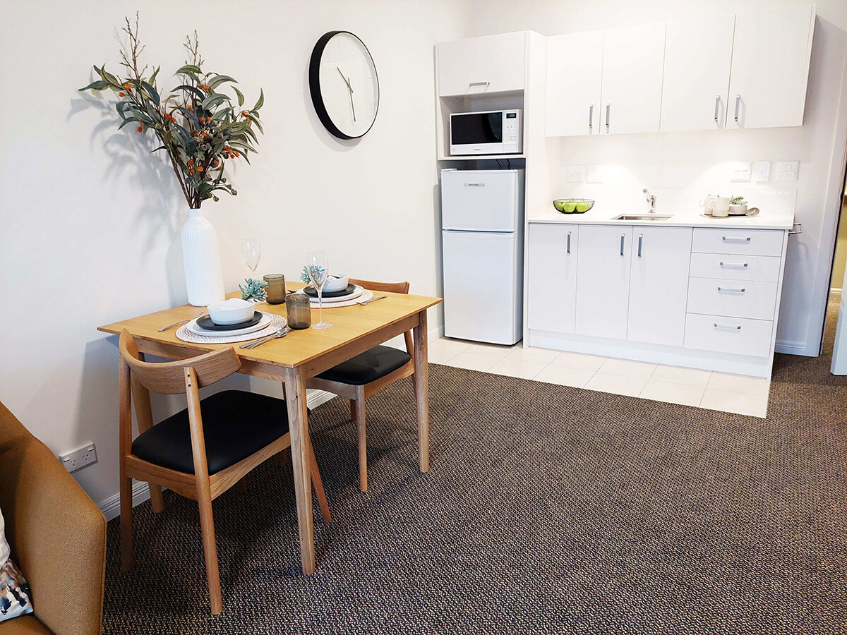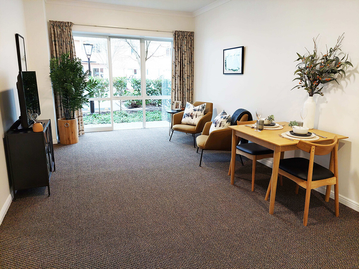Relax on your patio, or retreat to your bedroom that features your own ensuite. This apartment is fitted with a kitchenette, allowing you to maintain your independence by preparing light meals and snacks. Located on the ground floor, you will be close to the atrium, dining room and lounge, where you can meet up with friends.