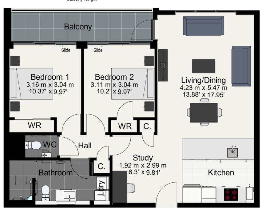 Enjoy afternoon sunshine and garden views from your open plan living area or out on your balcony. Both bedrooms feature a sliding door out to the balcony, allowing for easy access to an outdoor space and fresh air. The addition of a second bedroom and separate toilet makes it easy for you to host friends and family.