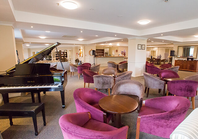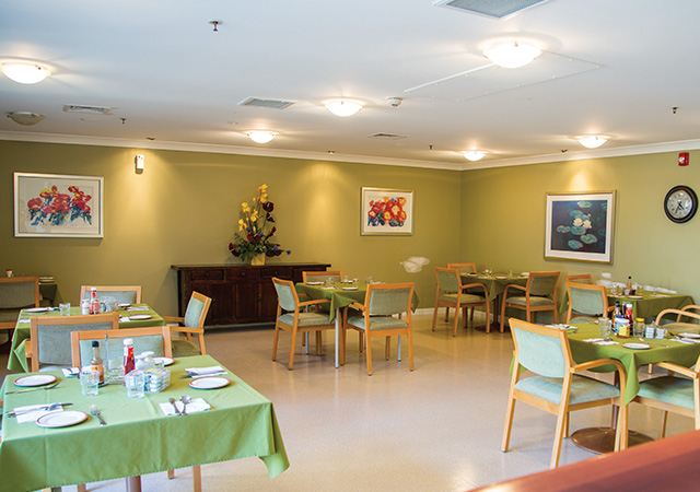 Lounge and dining areas provide spaces to relax and enjoy mealtimes. The food tastes great and the social interaction is good for the soul.